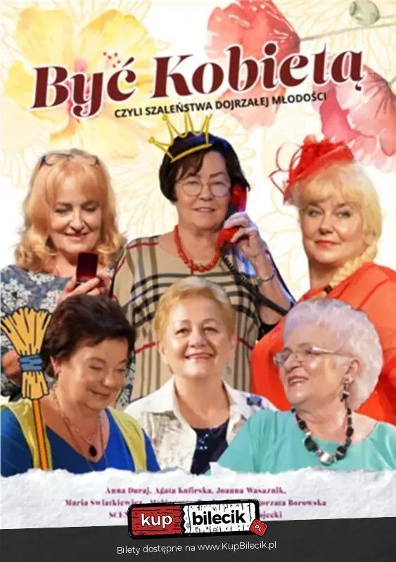 Spektakl "Być kobietą, czyli szaleństwa dojrzałej młodości" to doskonała komedia dla chcących pośmiać się do ostatniej minuty. Sześć kobiet w dojrzałym wieku przybywa do koleżanki, aby uczcić 60-tkę przyjaciółki. Gospodyni jest przygotowana na tę uroczystość, więc zastawia suto stół i czeka na swoje koleżanki. Przezabawne i urocze, singielki, wdowy oraz matki i mężatki przedstawiają siebie na scenie w obliczu nieuchronnej dojrzałości, wspominając chwile swojej młodości. Spektakl łączy elementy kabaretu, musicalu i farsy. Niezabranie wspaniałych polskich utworów z lat 70 oraz codziennych scenek z życia każdego z nas.